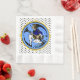 Na moda Hanukkah Napkin apresenta ÍconeDoÉ a variação original de um personagem anterior à WWI era Maxfield Parrish com leggings de bolinhas, uma menorah em seu calçado, em um círculo de travessas, coordenando sonhos e bolinhas negras em um pano de fundo branco. Saudação personalizável no verso.