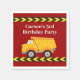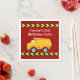 Legal guardanapo de festa de aniversário de veículos para crianças. Um caminhão de lixo amarelo em um guardanapo vermelho. Um veículo divertido decor para um menino que ama carros e caminhões. Personalize com o nome do seu filho sob a fita de precaução preto e amarelo.