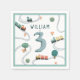Este bonitinho e moderno design de guardanapo de aniversário para crianças com temas de transporte apresenta uma ilustração de viagem de trem azul, com trens, trilhas e verde em um fundo branco. O guardanapo pode ser personalizado com o nome e a idade dos vossos rapazes, o complemento temático perfeito para a viagem à festa de aniversário do vosso bebê ou criança. Este guardanapo está definido para o 3º aniversário, mas é fácil editar isto em 'personalizar este modelo' para uma idade diferente!