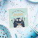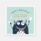 Adicione charme personalizado à festa de aniversário do seu monstro com estes adoráveis guardanapos personalizados. Design apresenta um monstro sorridente de desenho animado esportivo de uma gravata de arco laranja, em um fundo verde da casa da moeda. Personalize com uma mensagem e um nome personalizados; mostrados com "Parabéns". Projetado para corresponder à nossa coleção de suprimentos de aniversário de criança Monster.
