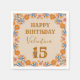 Os guardanapos florais mexicanos com flores de fiesta folk art na paleta colorida de champanhe bege azul-claro-rosa laranja e amarelo. Design com tipografia ocidental e uma elegante escrita manuscrita. O modelo está configurado para você adicionar seu nome e sua idade. Por favor, procure na minha coleção Floral mexicana itens correspondentes ou envie-me uma mensagem para criar as modelos de que necessita.