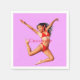Garota vermelha de cabelos negros vestindo biquíni salta alto dançando para personalizar, personalizar mudando para seu nome