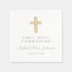 Personalizado Sábio Moderno Verde Cruz Religiosa Primeira Comunhão Napkins. Parte do Elegante Sage Green Religian First Communion Suite com convite, papelaria e acessórios partidários correspondentes disponíveis.