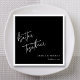 Celebre sua história de amor com a elegância eterno desses guardanapos personalizados de recepção de casamento "Moderno Conhece Clássico"! Apresentando uma mensagem impressionante de "Melhores Juntos" em um sofisticado fundo preto, esses guardanapos de alta qualidade certamente adicionarão um toque de sofisticação e encanto ao seu dia especial. O clássico esquema preto e branco cria uma estética moderna, mas eterno, que complementa uma variedade de estilos de casamento. Peça o seu hoje e crie um toque eterno e elegante para a sua recepção de casamento! Personalize-os com os seus nomes e data de casamento para um toque verdadeiramente único que os seus convidados irão apreciar. Feitos com materiais premium, esses guardanapos são na moda e funcionais, garantindo que seus hóspedes tenham tudo que precisam para celebrar no estilo!