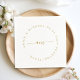 Monograma, moderno, mínimo, guardanapo branco. Personalizado com seu nome e data. Com fonte colorida dourada, monograma curvo. Seus nomes, data e local do casamento estão escritos em um círculo ao redor do monograma.