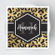 Ouro quico e guardanapos de impressão leopardo preto com nome personalizado e modelo de monograma. Um padrão de impressão animal de safari giro e tendencioso veio com seu próprio pedaço de personalização.