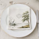 Guardanapo de papel elegante inspirado no estilo francês campestre com uma garça graciosa à beira de um lago sereno, ilustrado em estilo toile clássico. O detalhe refinado do monograma adiciona um toque atemporal e sofisticado, perfeito para casamentos em propriedades, jardins, campo ou à beira de um lago. Tons neutros suaves criam uma estética romântica e luxuosa. Iniciais totalmente personalizáveis para combinar com o seu dia especial.