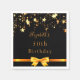 Para um aniversário elegante, clássico, glamouroso e feminino.Na frente: Faux gold Fbon e arco com estrelas ouros a gotejar. Fundo preto. Com o texto: 50º aniversário (ou qualquer idade). Personalize e adicione um nome escrito com um script de estilo moderno, escrito à mão.