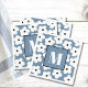 Design de flores brancas sobre fundo azul com monograma inicial personalizável.