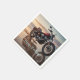 Estes guardanapos de papel apresentam uma motocicleta com uma praia impressionante e um pano de fundo do pôr do sol.