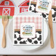 Adicione diversão à mesa com esta guardanapo com tema Cow Mooove Over 🐷🐔 Com uma vaquinha fofa e um visual rústico, é perfeito para crianças, festas de aniversário com tema de fazenda. Personalize com o nome e a idade do seu filho.