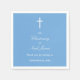 Na moda Blue Christening Party Napkins, personalize o nome e a data para suas necessidades junto com qualquer outro texto que você queira personalizar, antes de pedir alguns desses bonito guardanapos. Os guardanapos apresentam a cruz e o texto elegante na moda em branco sobre um azul gentil e adorável.