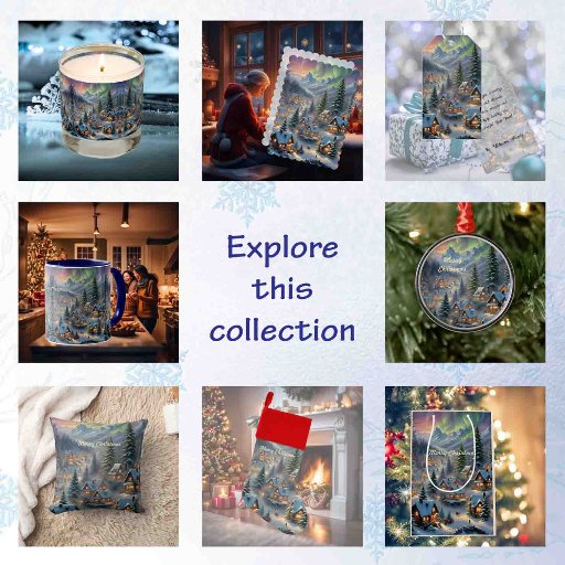 Este Napkins apresenta uma vila coberta de neve com casas iluminadas nas montanhas, cercada por árvores altas, luzes polares brilhando no céu. Excelente fornecimento de festas para a sua Festa de Natal! Custom Text.