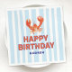 Set the stage for a nautical celebration with nautical kids birthday party napkins. These napkins showcase an enchanting lobster, modern blue and white stripes, and a personalized 'happy birthday' greeting with your child's name. Perfect for snack tables or cake time, these napkins unite fun style with convenience.