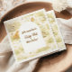 A soft and charming safari-themed design featuring gentle watercolor animals surrounded by delicate wildflowers and botanical greenery. Sweet lions, giraffes, elephants, and zebras create a whimsical storybook scene in warm neutral tones of beige, cream, and soft sage. The elegant arch layout and botanical details give this design a timeless and refined look, perfect for celebrating a little one’s special first birthday.