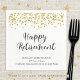 Celebrar um aposentado em uma festa de aposentadoria com esses guardanapos personalizados com um título de tipografia moderna HAPPY RETIREMENT com seu nome, anos de serviço e a empresa ou negócio, organização ou nome escolar e faux gold glitter confetti border. ASSISTÊNCIA: Para obter ajuda com a modificação ou personalização do design, alteração de cor, redimensionamento, transferência do design para outro produto ou, se você quiser coordenar itens, entre em contato com o designer ANTES DE ENCOMENDAR através da guia MENSAGEM de bate-papo Zazzle ou envie um email para makeitaboutyoustore@gmail.com.