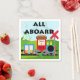 Se for uma celebração de aniversário de um tema de trem, você encontrará esses guardanapos de aniversário de Trem All Aboard para ser um ajustado perfeito! Possui uma locomotiva colorida de trem e carro com placa de travessia da ferrovia, trilhas de trem, céu azul, grama e colinas verdes, texto que lê All Aboard (Tudo a Bordo) e uma área que você pode adicionar facilmente o nome e a idade do aniversariante ou da garota! Temos as placas de aniversário de trem e os convites de aniversário também!