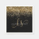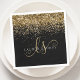 Guardanapos de Monograma Elegante Glam Glitter Dourado. Personalize facilmente este design de guardanapos chiques e modernos com glitter dourado brilhante em um fundo preto. O design apresenta seu monograma em letra cursiva manuscrita com espirais bonitas e seu nome.