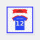 Personalize esses guardanapos com o nome do aniversariante ou da menina: digite a caixa. Este design apresenta uma tevê de esporte vermelha e azul em um fundo estrelado, com uma faixa vermelha de feliz aniversário.