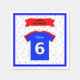 Guardanapos de festa divertida para meninos ou meninas: personalize-os digitando o nome do aniversariante ou da garota na caixa. Este design apresenta uma equipe esportiva vermelha e azul sobre um fundo estrelado, um grande número branco 6 e uma faixa vermelha de feliz aniversário.