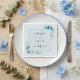 Este elegante guardanapo de casamento mostra delicadas flores azuis de cor d'água e verde macio armando de forma artística os nomes do casal feliz e a data de casamento em uma fonte clássica de serifa eterno. Definido dentro de um quadro botânico refinado, o design traz uma elegância rústica e inspirada no vintage ao seu jantar e a sua decoração de eventos especiais. A paleta de cor suave pastel melhora a atmosfera romântica, fazer-a como uma adição perfeita a uma mesa de jardim ou a um momento de casamento de outono. Mais do que um belo detalhe, este guardanapo serve como um encantador guardião que seus hóspedes podem levar para casa um lembrete sincero de sua alegre celebração e do amor compartilhado em seu dia especial.