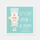 Alinhe a sua festa de férias com estes lindos e personalizados biscates de natal e guardanapos de papel de festas de férias com um preguiçoso que está atento com um coração no seu chapéu azul, leggings cor-de-rosa e botas brancas enquanto segura um cetro amarelo com aspecto de ouro. Fundo azul-aqua com as palavras Vamos ao Beber e Ser Feliz. Perfeito para uma festa de natal de um hambúrguer temido em casa ou em comemoração corporativa. Trabalho de arte © Chrissy H. Studios, LLC. Todos os direitos reservados.