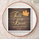 Os guardanapos de papel-cocktail personalizados e rústicos para a sua recepção de casamento. Cores do tema outono/outono em ouro nas matizes laranja-folha metálica e no painel madeira escura. Encontrado na coleção de casamento 'FALL IN LOVE - COUNTRY'.