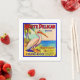 O pelicano branco é um pássaro admirável. Encontramos essa etiqueta de fruta retrô, que o mostrava e redirecionava em guardanapos para um olhar muito tropical!