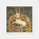 Napkins apresentando a tapeçaria medieval O Unicórnio em cativeiro (1495-1505). A sétima tapeçaria no The Unicorn Tapestries - também conhecida como The Unicorn Rest in a Garden - mostra um unicórnio branco com um colarinho azul sentado dentro a cerca. A grama verde e lindas flores rodeiam o unicórnio. Um presente fantástico para colecionadores de arte medievais e amantes da fantasia!