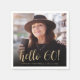 Este guardanapo de 60 anos personalizado apresenta a foto personalizada, o nome e o aniversário do convidado de honra, juntamente com as palavras "olá 60!" em um elegante roteiro de caligrafia dourada. Uma tela escura ajuda a tornar o texto pop. Uma forma excelente de celebrar alguém que está fazendo sessenta anos!
