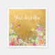 Opulence gold floral custom napkins, floral hummingbird napkins for a beautiful gift presentation.