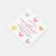 Complete your sweetheart-themed baby shower table setting with this charming candy heart baby shower napkin. The design features colorful conversation heart illustrations arranged around the layout with playful phrases like “It’s a Girl!”, paired with elegant pink script reading “Our Little Sweetheart Is on the Way.” Customers can personalize the napkin with the mother-to-be’s name and baby shower date, displayed neatly below the main wording. Sweet and Valentine-inspired, this napkin coordinates beautifully with sweetheart-themed décor for February baby showers welcoming a baby girl.