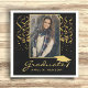 Formando Dourado de Graduação Preta para o Ouro Confetti Foto Napkins. Script de ouro de tendência com confetti de ouro e boné de formatura de ouro em fundo preto. Adicione a sua foto favorita e personalize-a com o nome do seu formando.