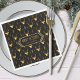 Este guardanapo de papel apresenta um padrão tendencial de silhuetas de cervos com curvas, setas estilizadas e pequenos flocos de neve com efeito texturizado em tons de ouro sobre fundo preto Texto opcional "Feriados felizes" e um rótulo foram fornecidos para adicionar seu nome e/ou outro texto. Procure ID861 a ID864 para ver opções de cores adicionais e outros produtos neste conjunto de design de Natal moderno.