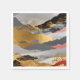 Uma paisagem serena e inspirada no Japão, com montanhas e árvores em camadas, destacada com detalhes de ouro em shimmering. Essa elegante composição combina estética tradicional com abstração moderna.