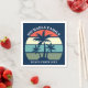 Um guardanapo de praia bonito para férias de verão ou primavera em um cruzeiro ilha ou uma viagem à beira-mar tropical. Possui belas palmeiras em frente a um pôr do sol bonito. Personalizar para uma reunião de família ou outra cave costeira.