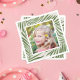 Os guardanapos de papel tropicais apresentam um design verde de borda com formato de folha de palma, de frondes em camadas com um fundo sutil no estilo de roupa. Personalize com uma foto favorita das férias de verão.