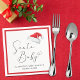 Festa natalícia elegante guardanapos de chá de fraldas com "Papais noeis Bebê" escrito em um roteiro elegante com uma batida cardíaca e uma ilustração aquática de um chapéu vermelho de Papai Noel. Personalize com o nome da mãe e a data do chá em uma simples tipografia moderna.