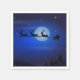 Uma ilustração festiva de natal. Papais noeis no seu trenó e suas renas voando através do céu azul escuro da noite. Uma lua brilhando ilumina o céu e pode-se ver estrelas cintilantes ao redor.