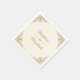 Guardanapos de papel de casamento elegantes com uma borda ornamentada dourada em um fundo creme.