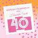 Partido aniversário de 40 anos da Celebração Napkins em Rosa e Branco com um trio de retângulos geométricos como pano de fundo legal para legal 40 textos tipográficos. Personalize com um Nome e Mensagem para tornar o Fornecimento do Partido tão exclusivo quanto o Convidado de Honra.