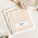 Os guardanapos de papel de chá de fraldas da nossa coleção temática "Doce pequena pêssego", com um fundo listrado de pêssego pastel e uma fonte de script de safra.