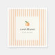 Bonitos guardanapos de papel de chá de fraldas, tema "doce de pêssego", com um fundo listrado de pêssego pastel e um roteiro de safra.