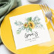 Linda e rústica cor d'água, girassol, eucalipto verde com nome de script, guardanapos de papel chá de panela.