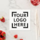Embalagem de guardanapos de papel de qualidade superior impressos com um logotipo personalizado a cores de cheio, símbolo, fotografia ou outra imagem da sua escolha. Basta mudar a imagem modelo. Use um arquivo SVG ou PNG transparente para obter melhores resultados. A cor de fundo também pode ser personalizada e você pode até adicionar texto e bordas.
