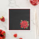 Estes guardanapos são tudo menos padrões. Mostrada com um solteiro, poinsettia vermelha em negrito no canto inferior em um fundo preto, uma borda vermelha fina com bordas externas brancas. Personalize este item ou comprar conforme projetado.