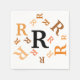 Inicial de sua escolha em laranjas. Atualmente, a letra R é exibida. Uma grande letra central de preto é rodeada por quatro letras ligeiramente menores, e dez letras ainda menores são embaralhadas em volta da letra central e apresentadas em vários tons de laranja e marrom. O fundo é atualmente um amarelo médio, que pode ser alterado. ***Parte do conjunto coordenado - bkm2q4.