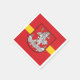 Napau de papel com design com pavilhão de Vilnius, capital da Lituânia; bandeira vermelha com faixa amarela e casacos de armas com dois leões ouro segurando um escudo no centro