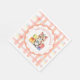 Adorável e personalizado Feliz Aniversário gatinho temido guardanapos de papel com um doce gatinho aquoso segurando um cupcake rodeado por presentes de aniversário. Xadrez de coral encantadora.
