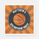Guardanapos personalizados do tema do basquete para uma festa de fã de basquete. Personalize este acessório do partido excelente com o nome e a idade da pessoa ou use os detalhes do evento da escola e da faculdade. Visite nossa loja para ver outros itens que coincidem com este design.